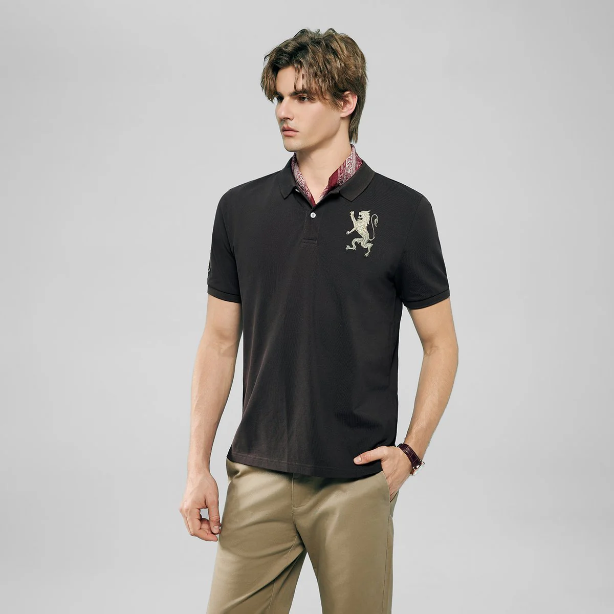 Men’s Slim Fit 3D Lion Embroidery Lycra Pique Polo