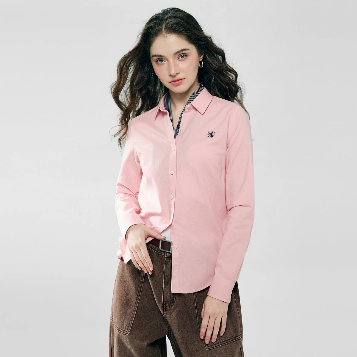 - Women’s Oxford long sleeve shirt with elegant embroidery
