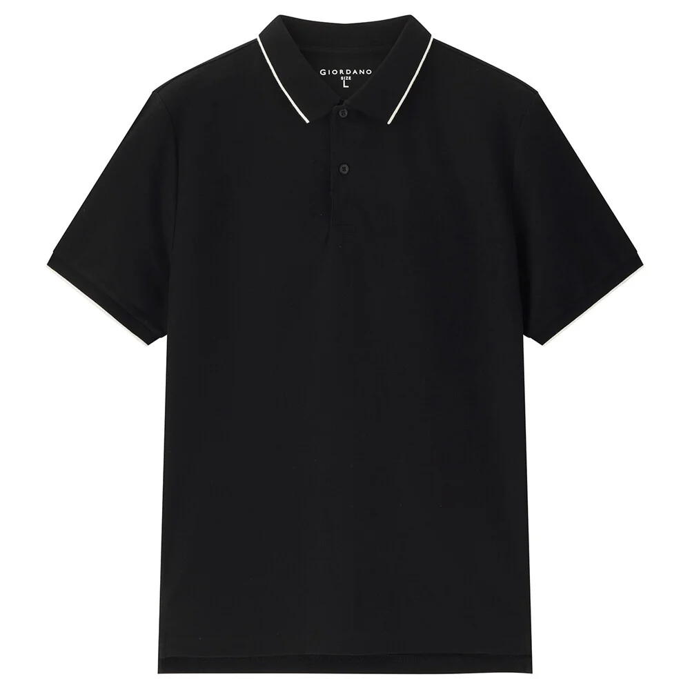 - This is a polo shirt made from a cotton and polyester pique fabric. It features short sleeves, a slim tapered fit, and a button front,.